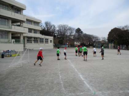2月に入り、校庭の体育では「サッカー」に取り組み始めました。