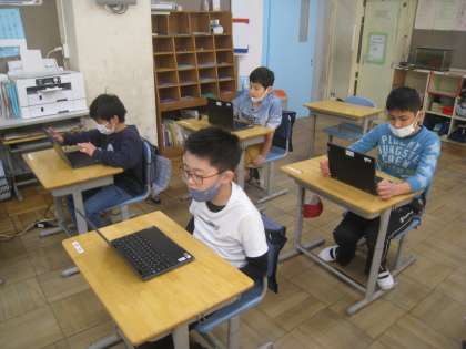 総合の時間には、クロムブックを使った活動をしています。