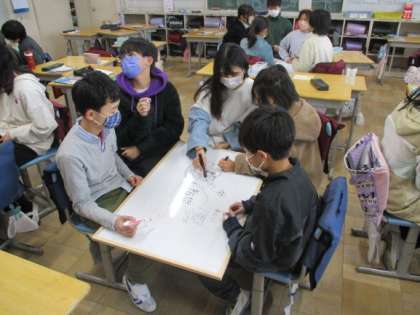 今日は、これからの日本を考える際、ワールドカフェ方式を用いて話し合いました。