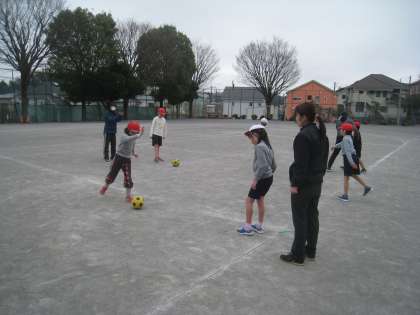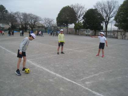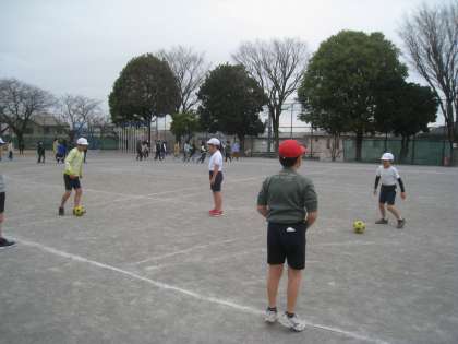 校庭の体育では、「ボール蹴り運動」に取り組んでいます。