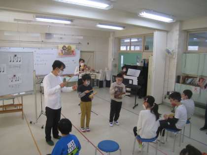 今日の音楽では、ゲストティーチャーをお迎えして学習を行いました。