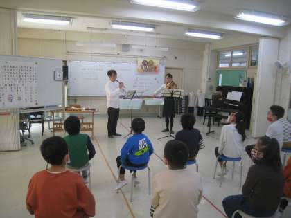 目の前で バイオリンやフルートの演奏を聞くことができました。