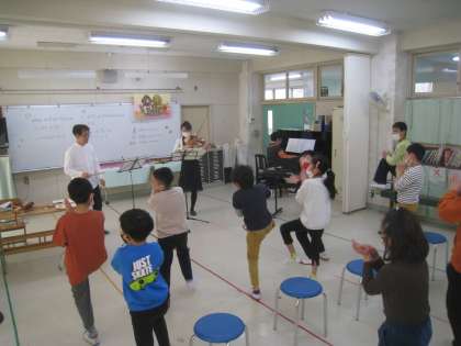 ドラえもんの歌を演奏してもらいながら歌ったり、一緒に楽器を演奏したり、パプリカを演奏してもらいながら踊ったりできて、とても楽しい時間を過ごせました。