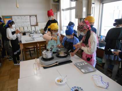 5年生は調理実習で白玉団子を作りました。