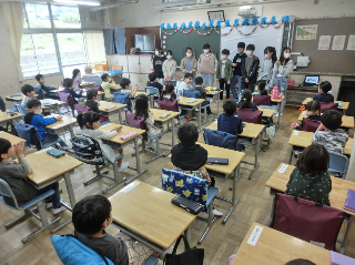 【4月7日・1年生】6年生たちが迎えてくれました。