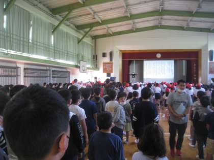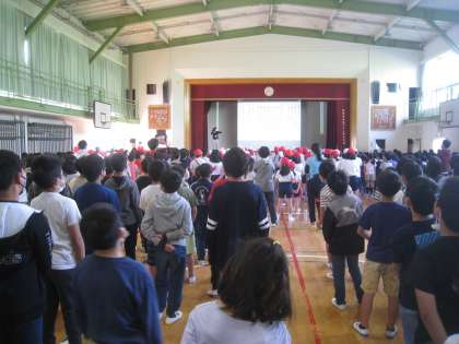 校歌・離任式の歌・1年生を迎える会の歌を 元気に歌いました。