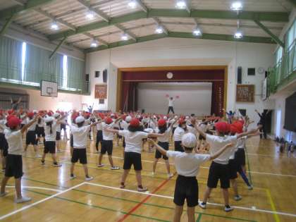 すぎな学級の児童も それぞれの学年に入って練習に取り組んでいます。