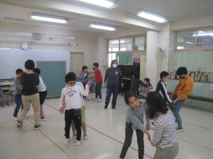 【5月16日・すぎな】音楽 公開日 2023/05/16 更新日 2023/05/16 学校日記 音楽では、「なべなべそこぬけ」の活動をしました。 ペアになって くるっとひっくり返ります。 曲に合わせて楽しく体を動かしました。 すぎな