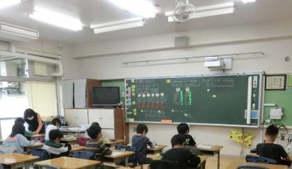 【5月15日・3年生】算数・同じ数ずつ分けよう 公開日 2023/05/17 更新日 2023/05/17 学校日記 「いちごが18こあります。6人で同じ数ずつ分けます。1人分は何こでしょう。」問いを理解し、まず、問われていることをイラストを使って考えます。次にマグネットを使って図に表します(アレイ図)。その後に立式し、数で計算できるようにします。このステップを繰り返すことで、数学的な思考力を育みます。 3年