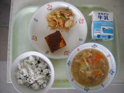 ・トマトソーススパゲッティ・キャベツとコーンのサラダ