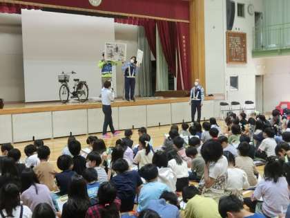【5月30日・3年生】自転車教室 公開日 2023/06/01 更新日 2023/06/01 学校日記 自転車教室を実施しました。町田警察署の方から自転車の安全な乗り方や自転車に乗っていて起きてしまった事故の例などを紹介していただき、最後にクイズをして楽しみながら学びました。自転車のルールは、自分だけでなく、相手を守るためにも必要なことを改めて意識している様子でした。 3年