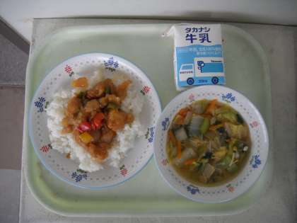 【給食・6月2日】 公開日 2023/06/02 更新日 2023/06/02 学校日記 〔6月1日の献立〕 ・ごはん・さけの照り焼き ・もやしとコーンのおひたし・豚汁・牛乳 〔6月2日の献立〕 ・とり丼・青梗菜のスープ・牛乳 給食