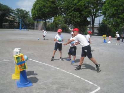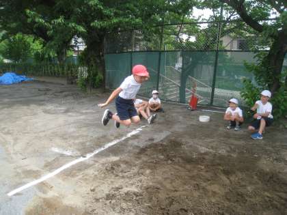 ボール投げや立ち幅跳びなどの種目に一生懸命取り組んでいました。