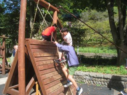 簡単なアスレチックがあったので、挑戦しました。