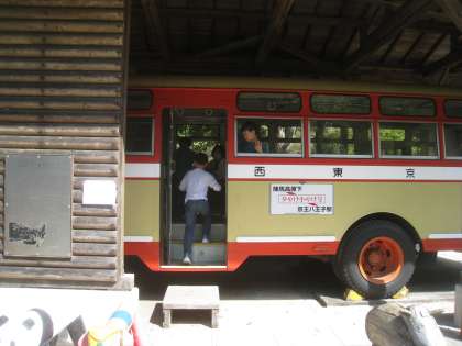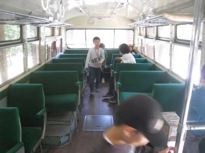 ふれあい動物園には、昔に使われていたバスが展示してありました。