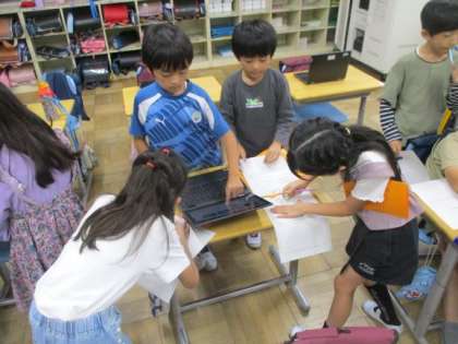 【10月4日・2年生】校外学習に向けて 公開日 2023/10/04 更新日 2023/10/04 学校日記 校外学習に向けて、グループの目標や見たいところを相談しています。 クロムブックも活用しながら、展示されている生き物を確認しました。映像や画像を見ただけで、楽しそうな雰囲気が高まっています。 明日は楽しみながら学習していきましょうね。 2年
