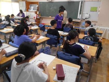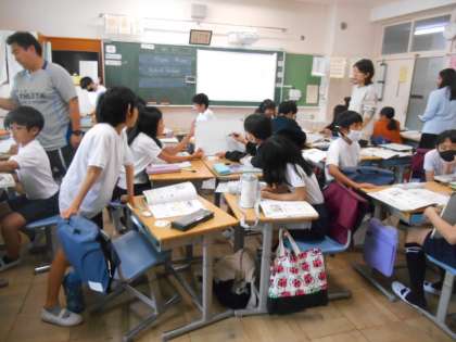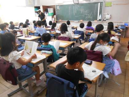 4月17日(水)学校の様子 公開日 2024/04/17 更新日 2024/04/17 学校日記 2年生の国語の様子です。「ふきのとう」を音読して、その場面の情景や気持ちを考えていました。 4年生の書写の様子です。書写開きということで、道具の名称や道具の置く場所の確認をしていました。 5年生の英語の様子です。市内でWifi環境が不具合になり、急遽、ミニホワイドボードを使って、名前を書いたり読んだりする学習を行いました。