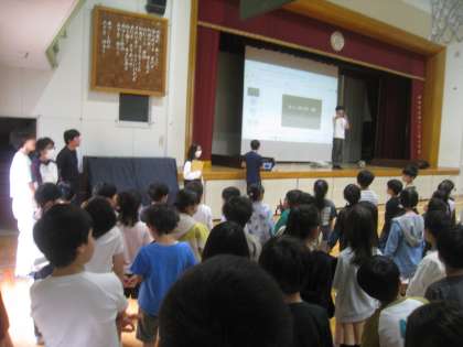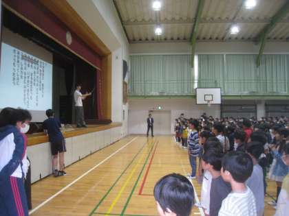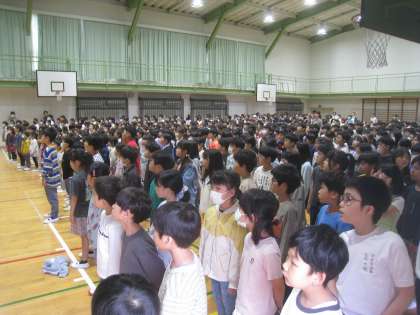 全校で体育館に集まり、「校歌」の練習をしました。