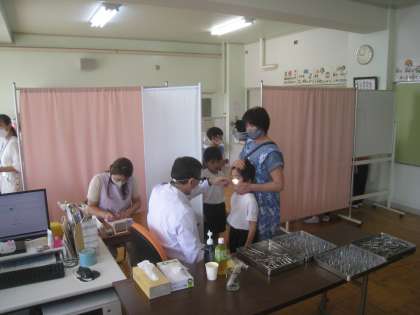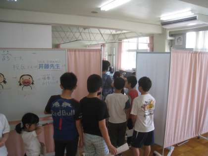 保健室で 一人ずつ診てもらいました。