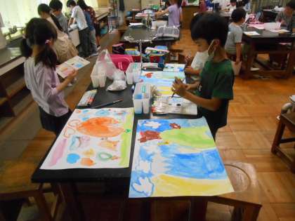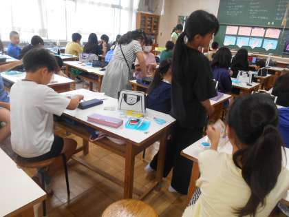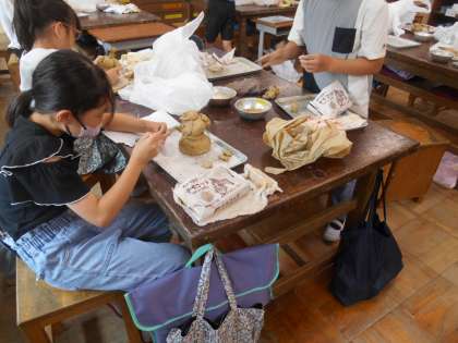 5月28日(火)学校の様子 公開日 2024/05/28 更新日 2024/05/28 学校日記 5年生の家庭科の様子です。フエルトに自分の氏名を縫う練習をしていました。 5年生の図工の様子です。粘土で土偶を作っていました。細部まで丁寧に仕上げていました。 3年生の図工の様子です。大きな画用紙に背景を描いて、その後、別の紙に描いた乗り物を切って貼り付けます。