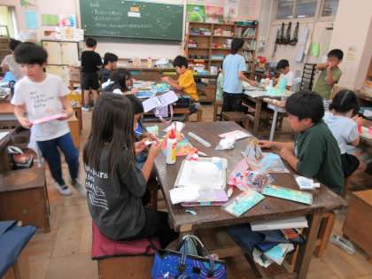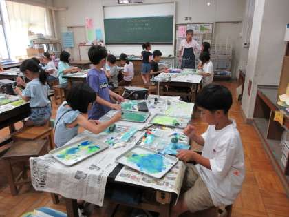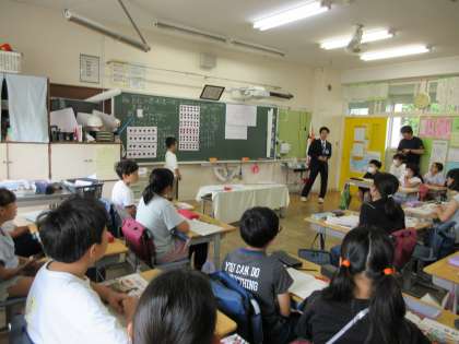 5月30日(木)学校の様子 公開日 2024/05/30 更新日 2024/05/30 学校日記 5年生の算数の様子です。公約数について学習していました。 3年生の図工の様子です。3色の絵の具をローラーで伸ばして、色を作っていました。画用紙に塗り、それを鳥の形に切り抜くそうです。 4年生の図工の様子です。不思議な島を紙粘土で作っていました。