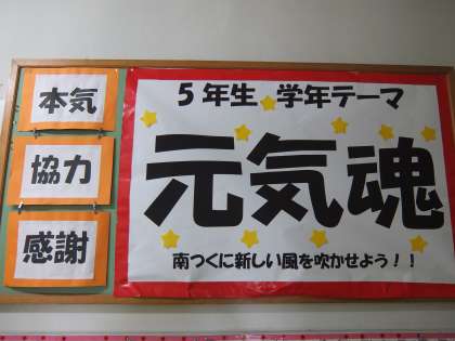 そして、学年目標は「元気魂〜南つくに新しい風を吹かせよう〜本気!協力!感謝!」となりました。来週月曜日からは、通常登校です。みんなで心を一つにして新しい風を吹かせましょう。