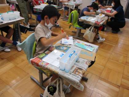 今週の様子です。 川や海をイメージしながら 絵具を使って、 描くことができました。