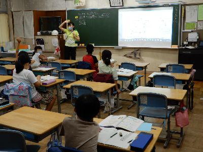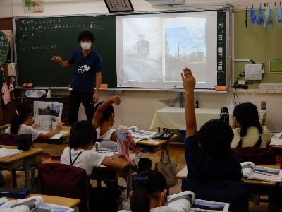 3年生の社会科では、昔と今の町田の写真を比較して気が付くことをあげていました。4年の算数では、少人数ならではで子供同士の距離が確保できています。