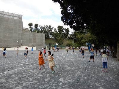 2学期開始から3日感、好天が続いています。先週までと違って、湿度がやや低めのせいか、元気に遊ぶ子が多く見られます。とはいえ、学年ごとに外遊びをしていい休み時間を分けて、校庭での密集をできるだけ避けるようにしています。中休みの校庭はたまたま日が陰っていたこともあり、気温30.3度、WBGT指標は27.1でした。
