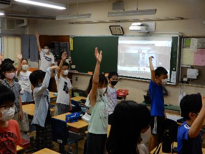 校内Meetを利用しての、初の児童集会を行いました。今までは放送室のスタジオからテレビで中継していましたが、放送室にあまり人を入れられないこと、画面がテレビよりもずっと大きくなることから、クロムブック、プロジェクターを利用することが、これからの主流になりそうです。すでに始業式や終業式はこの形式で行っています。)集会委員のゲーム発信所(スタジオとしての算数室)から配信所(各教室)の様子がリアルタイムではわからない点が、進行役の司会者には難しい点だったようです。