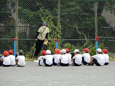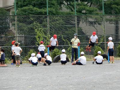 5時間目、2年生の別のクラスは鉄棒を使った運動遊びに取り組んでいました。工事で狭くなっている校庭を効果的に使うため、その時間の前半と後半を2つのクラスで場所と活動を入れ替えて行っていました。こちらのクラスは授業の後半は鬼遊びに取り組みました。