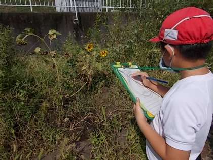 1学期から続けてきたヒマワリの観察をしました。