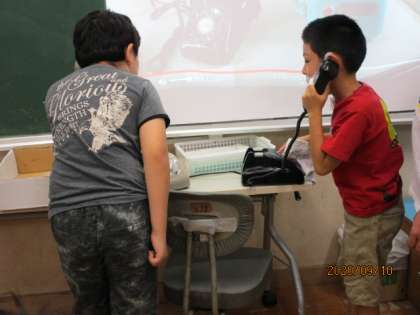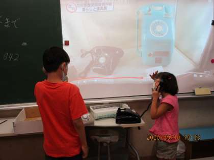 初めて触る黒電話に子どもたちは驚き、感動していました。