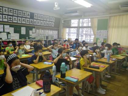 【3年生・9月15日】 公開日 2020/09/16 更新日 2020/09/17 学校日記 2学期よりEnglish timeがはじまりました。 朝の時間に、英語での活動に取り組みます。 今回は、体を動かしながら英語の歌を聞きました。 とても楽しい時間でした。 3年