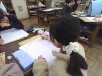 3年生の理科の様子です。太陽の光を虫眼鏡で集めていました。「こげくさい」「穴があいた」など実験の結果を確かめていました。