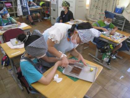 チョコレートやバナナを切って、パンに上手にはさむことができました。