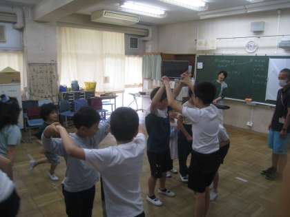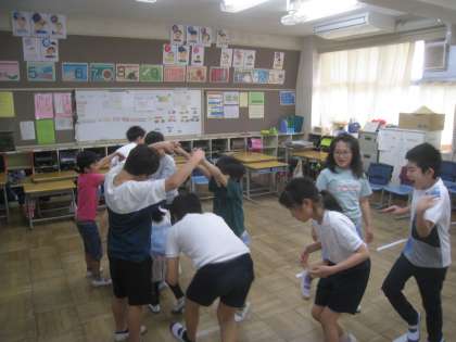 音楽では、みんなで「ロンドン橋落ちた」の活動をしました。
