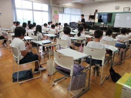 4年生の音楽の様子です。リコーダーと手拍子で合奏をしていました。