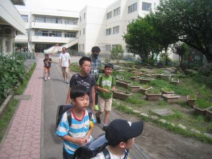 今日は、方面別に並んで下校しました。