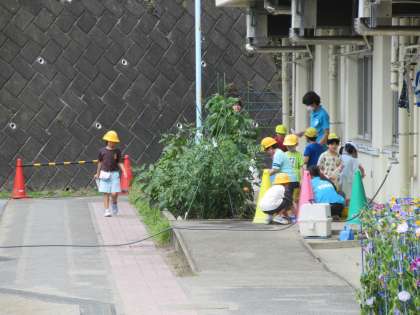 すぎな学級です。畑に水やりをしていました。少し雲が出て、幾分、暑さが和らいでいました。