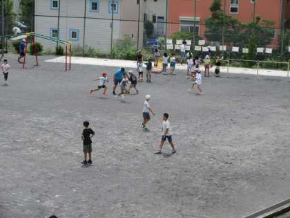 久しぶりに、休み時間、校庭で遊んでいます。