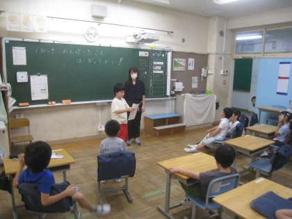 終業式のあと、一人一人が1学期に頑張ったことを発表して、通知表をもらいました。