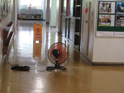 本日は、校舎内の廊下にワックスをかけていただきました。