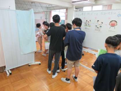 7月24日(木)事前検診(6年) 公開日 2024/07/24 更新日 2024/07/24 学校日記 6年生は明日から、2泊3日で日光に林間学校に行ってきます。 そのため、前日検診を行いました。子供たちも楽しみにしている林間学校です。体調も特に問題ないようでした。明日から3日間、楽しい思い出を作ってきます。