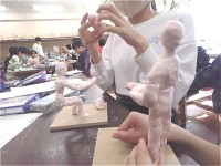6年生の図工です。「将来の私」という題材に入りました。骨組みに肉をつけています。...