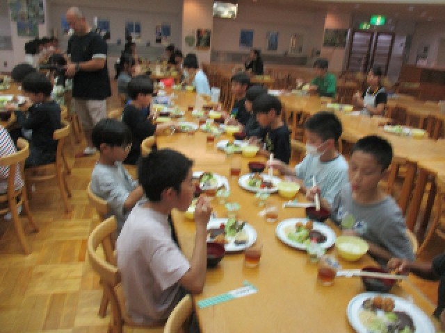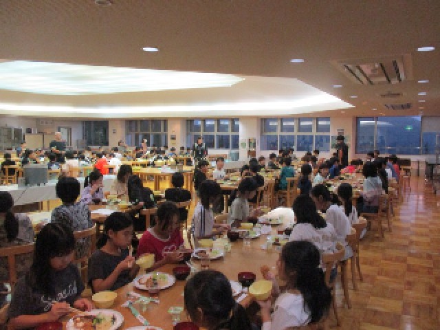 お腹が空いていた子どもたち。どれも美味しく頂きました。特に唐揚げが人気でした。普段は御代わりをしない子もご飯や汁物を御代わりしている様子も見られました。みんなよく食べて元気です。