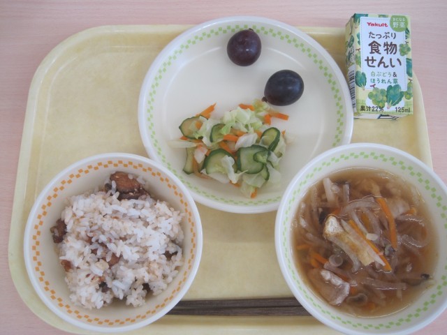 デザートの巨峰は皮の部分の紫色に目に良い「アントシアニン」が豊富です。ただ巨峰の皮は渋みもあるので無理に食べず良いことにしました。