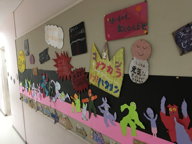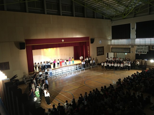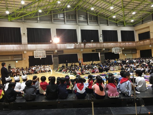 本日は学芸会の児童鑑賞日でした。どの学年も今までで1番良い姿を、全校に発表することができました。また、子どもたちは他の学年の演目を真剣に見つめていたり、面白いシーンでは楽しんだり、感動を拍手で伝えたりしていました。全校で集まって学芸会を鑑賞するのは6年ぶりです。体育館でみんなで演目を見合い、素晴らしさを讃えあう素敵な時間になりました。明日は保護者鑑賞日です。子どもたちの素晴らしい姿をお楽しみください。校舎内に4から6年生が製作した学芸会の飾りが展示してあります。併せて学芸会の雰囲気をお楽しみください。