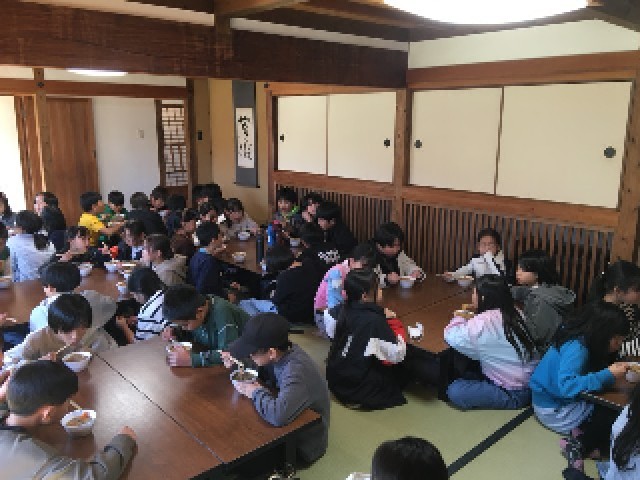 小野路宿里山交流館へ校外学習に行きました。紅葉やイチョウの葉など道中の景色を見ながら、豚汁を楽しみに歩きました。谷戸の景色は自然の力だけで生み出されていることや、私たちの給食に出てくる野菜が育てられていることなど、現地に行かないと見られない貴重な体験をすることができました。楽しみにしていた豚汁の実食では、おかわりコールが止まらないほどおいしく頂くことができました。