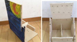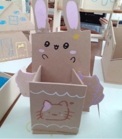 使うと楽しい小物入れをつくりました。用途を考えながら、いろいろな形に切ったり組み合わせたりして作りました。